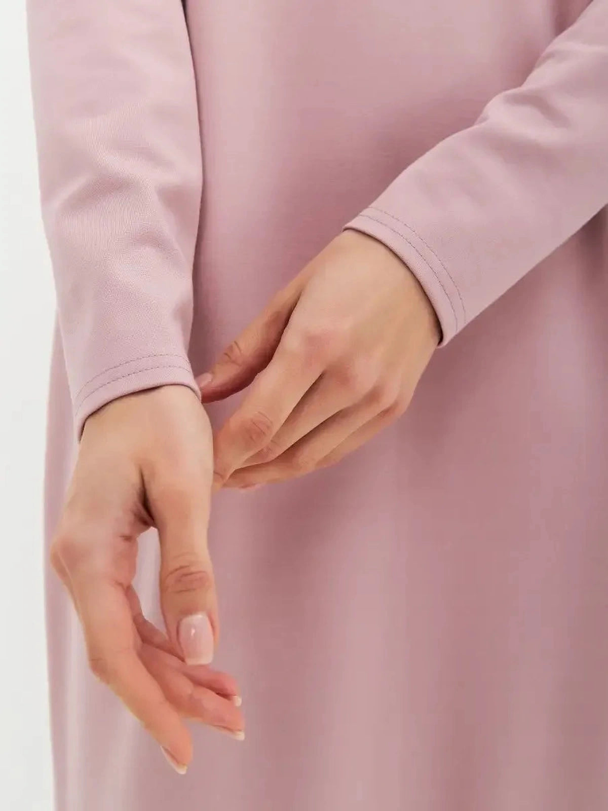 Crafted from a luxurious blend of viscose, nylon, and spandex, this soft dusty rose dress boasts a smooth, semi-matte finish that drapes beautifully without clinging or revealing undergarments. Its breathable jersey fabric maintains its shape and resists pilling even after hundreds of washes, promising durability alongside style.