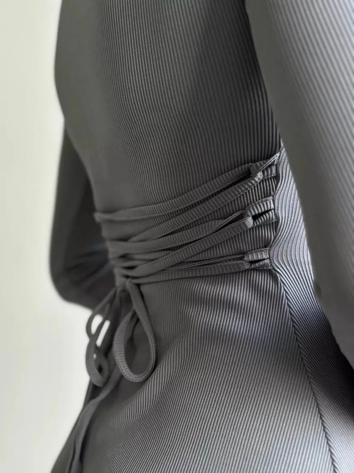 Celeste Mini Dress — Elegant Ribbed Knit with Tie-Back Detail