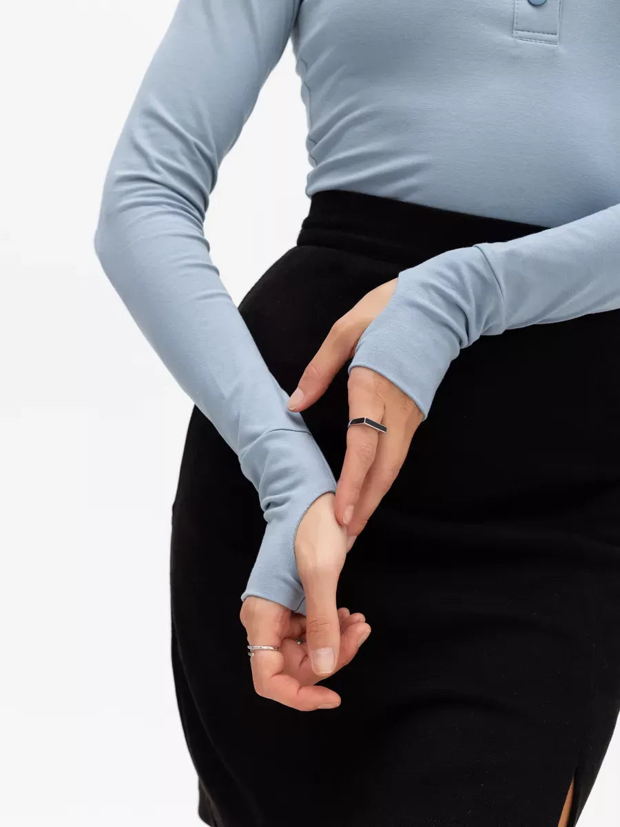 Celeste Pullover — Fitted Pastel Blue Cotton Long Sleeve Top with Thumbhole Detail