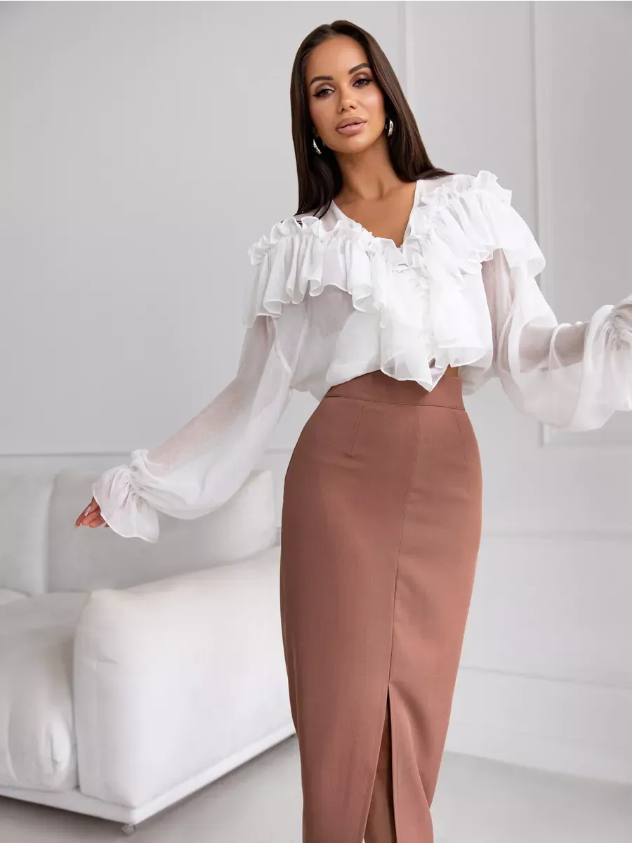 Perfect for women of all ages and body types, the Dalia Midi Skirt pairs beautifully with blouses, sweaters, and blazers, making it a reliable choice for any season and occasion.