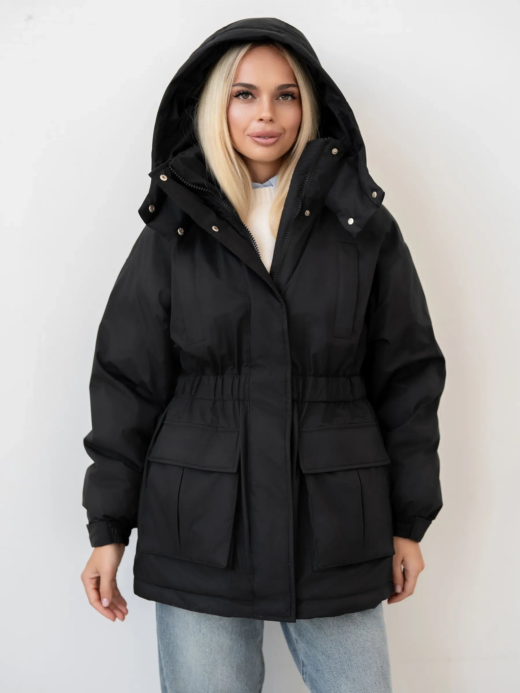 Equipped with practical flap and side pockets secured by buttons, an adjustable waist drawstring, and elastic cuffs to block out cold air, the Eden Jacket is a versatile and stylish outerwear essential. Its clean lines and thoughtful details make it ideal for urban streetwear or casual everyday looks.