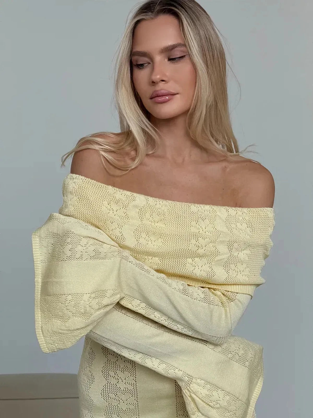 Luna Midi Dress – Elegant Off-Shoulder Knitwear in Cream