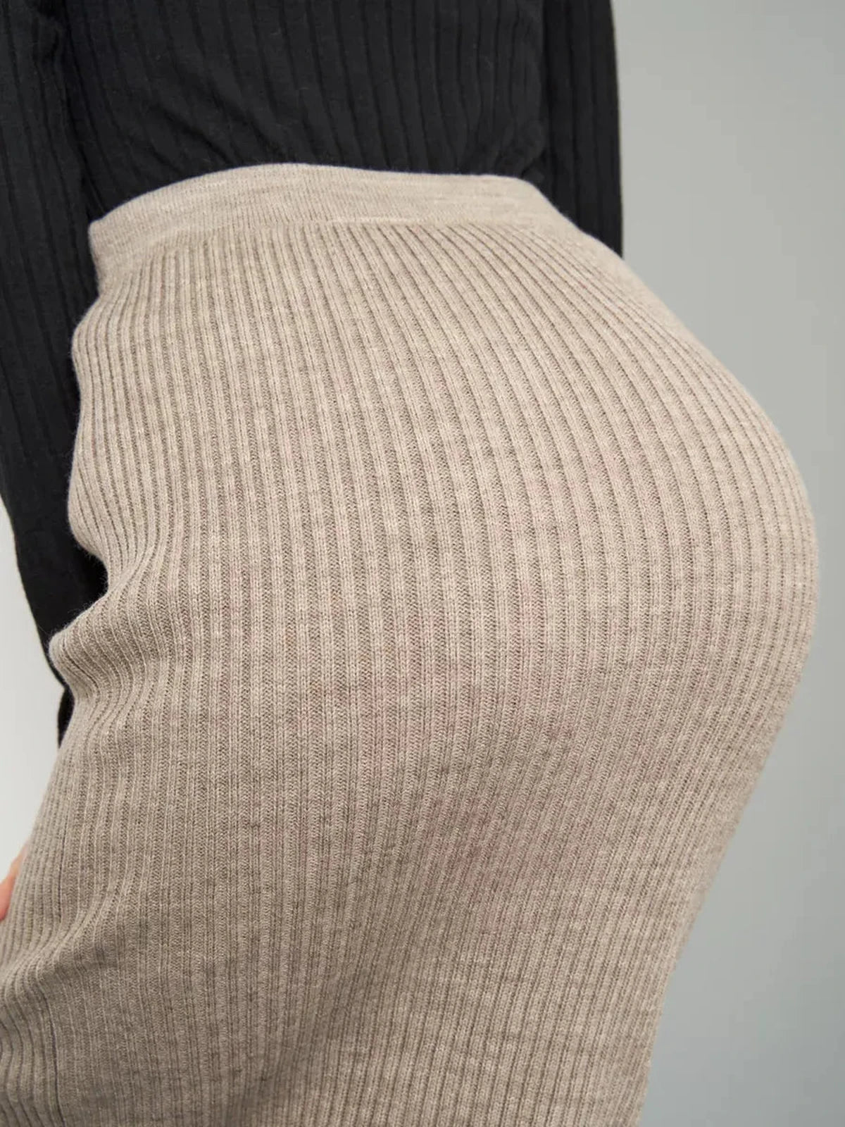 Discover timeless elegance with the Luna Midi Skirt, crafted from a premium blend of 20% wool and 80% polyester ribbed knit fabric. This high-waisted, form-fitting midi skirt offers a flattering silhouette that enhances your natural curves while providing warmth and comfort for cooler seasons. Designed to be both stylish and versatile, it is an essential piece for women seeking a blend of luxury and practicality.