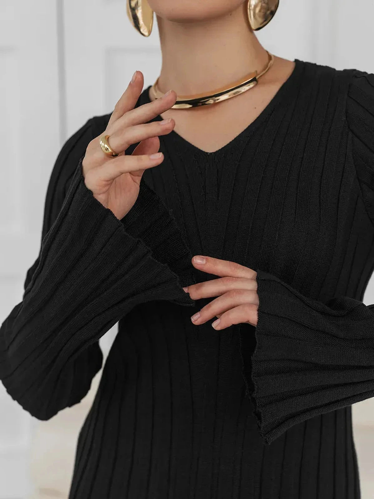 The Lunara Maxi Dress redefines modern sophistication with its sleek ribbed knit design and timeless silhouette. Crafted in a versatile black hue, this long-sleeve women’s maxi dress offers both warmth and elegance, making it a true wardrobe essential.