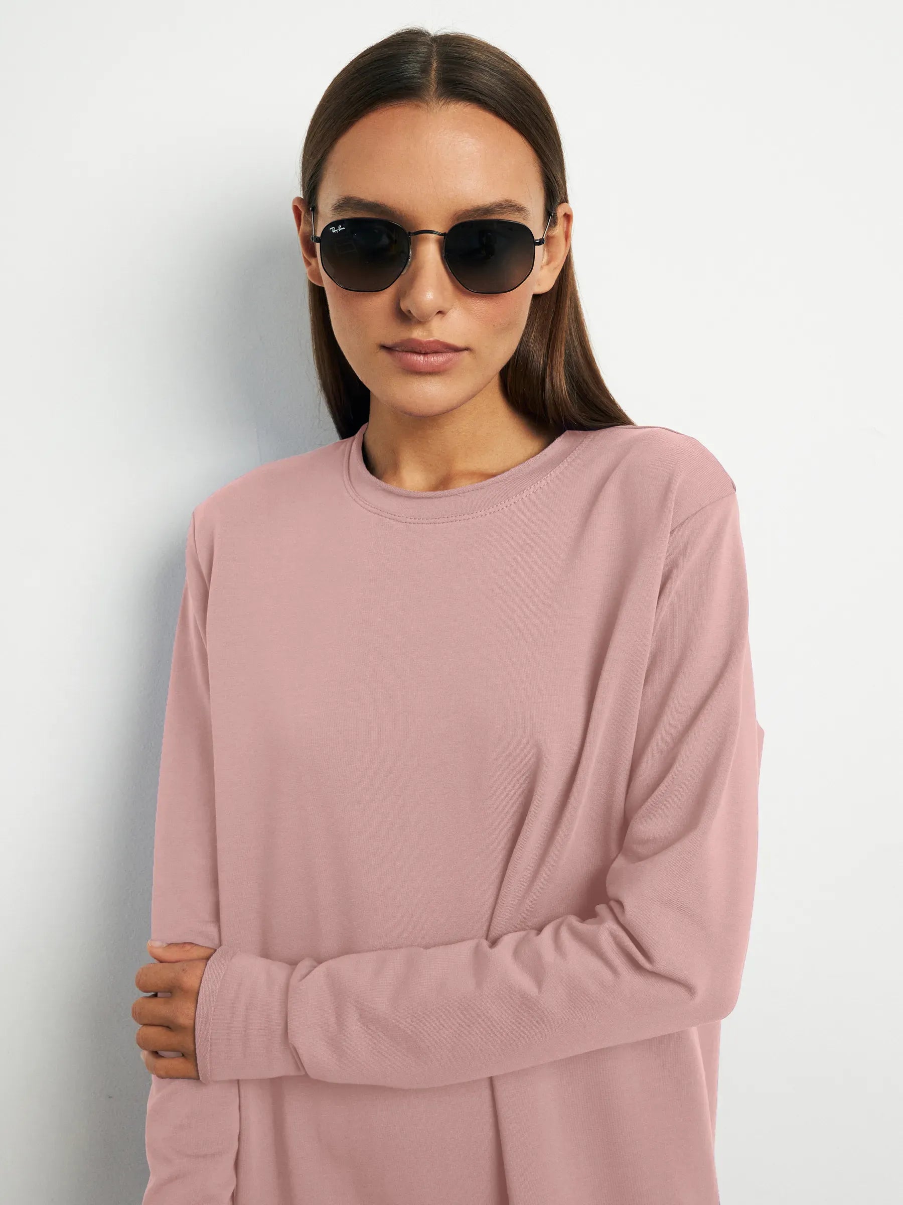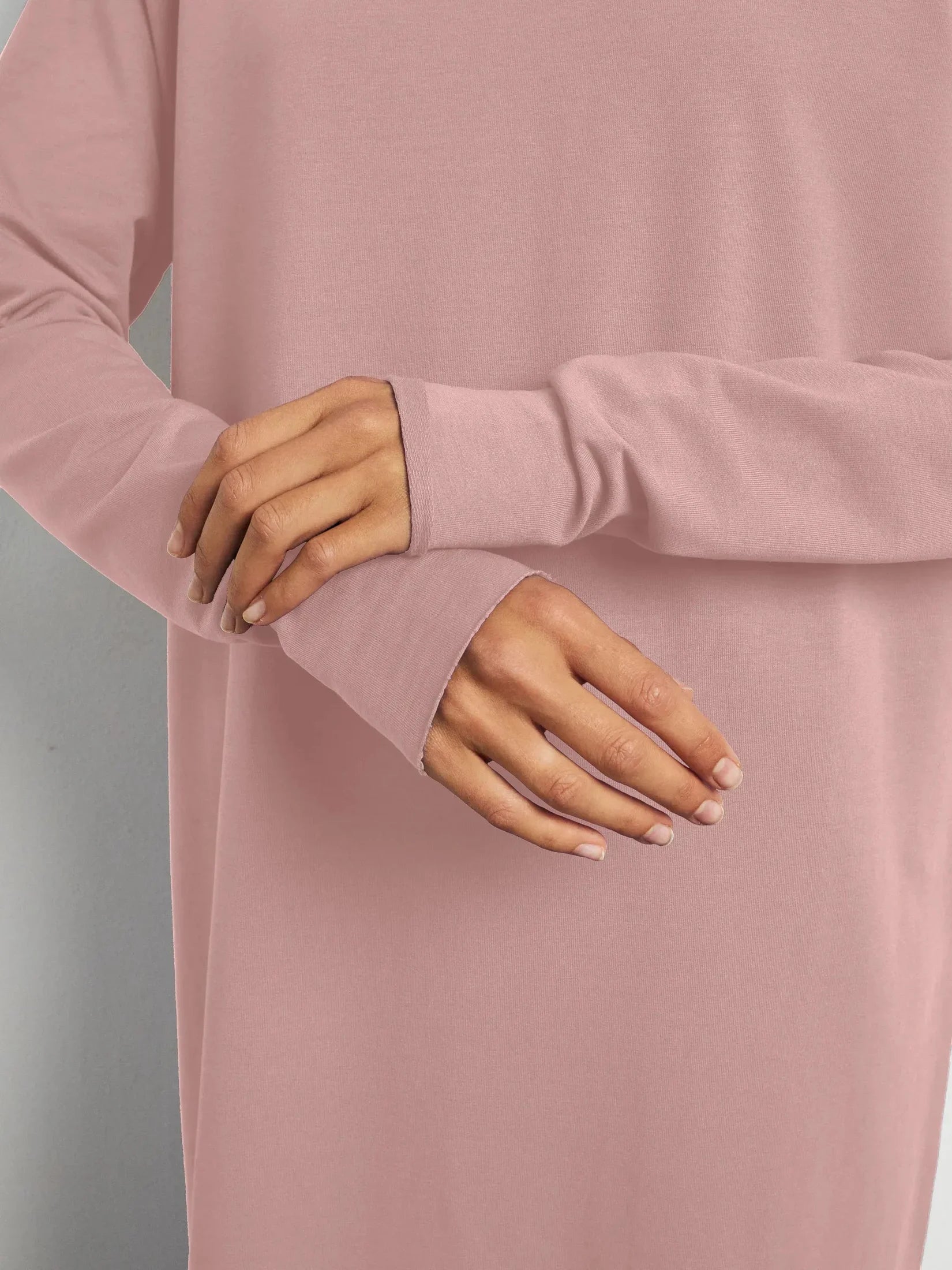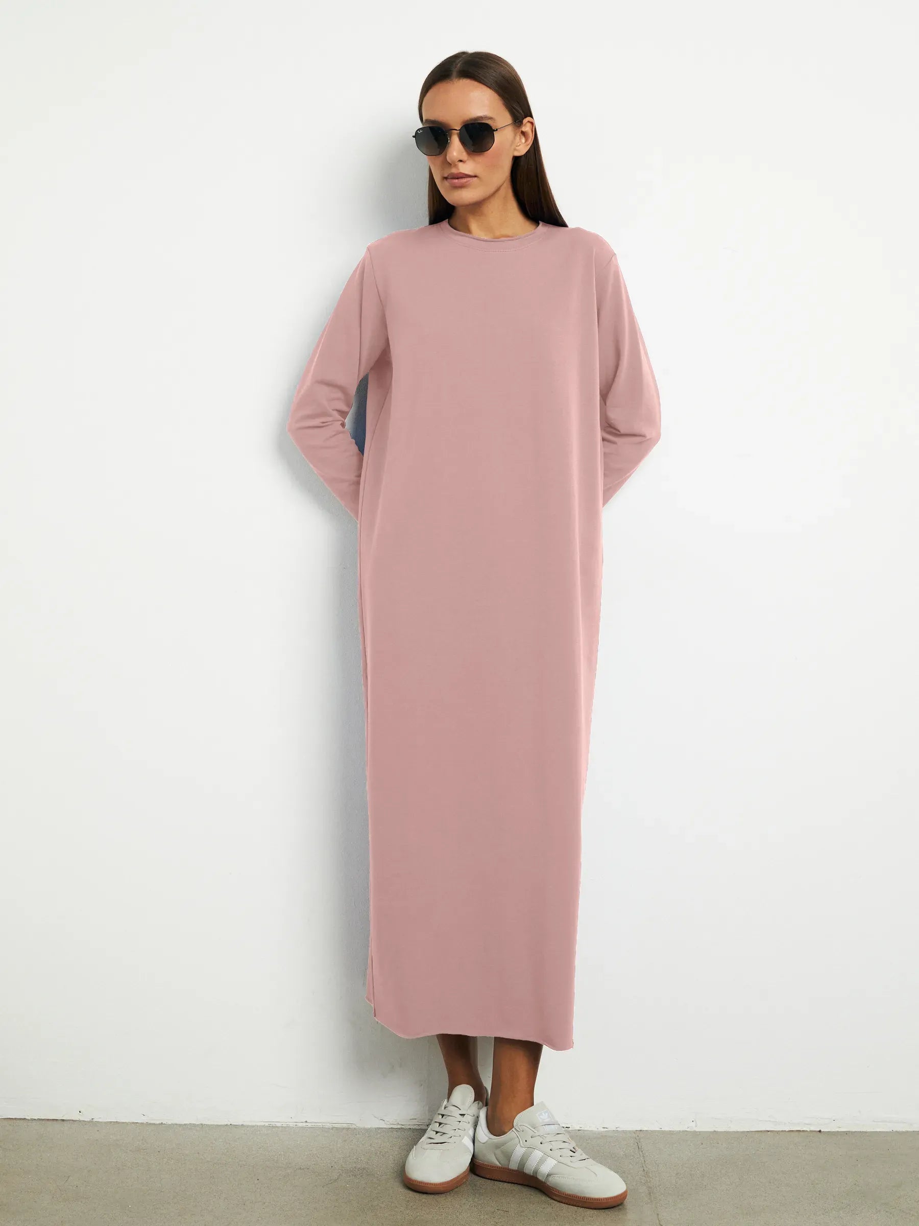 The Lunaria Maxi Dress is the embodiment of modern minimalism and comfort, blending casual ease with refined luxury. Crafted from premium two-thread cotton jersey with a touch of elastane, it delivers a smooth silhouette and all-day softness. The powdery pink tone enhances its understated femininity, perfect for effortless everyday style.