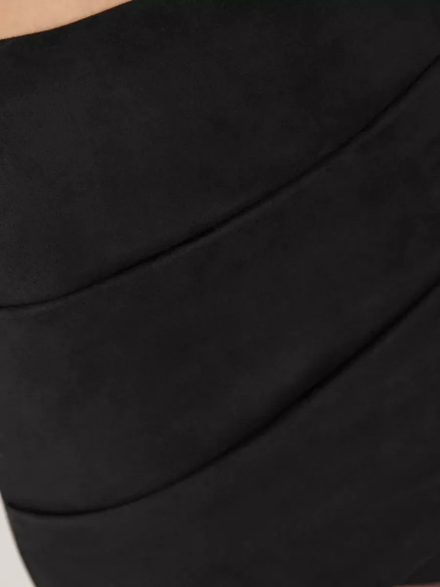 The Lyra Mini Skirt is a timeless piece that redefines the essence of effortless sophistication. Crafted from soft faux suede with a touch of stretch, this black mini skirt flatters your silhouette while providing ultimate comfort throughout the day. Designed with a modern high waist and subtle asymmetric draping, it brings an elevated edge to both casual and office-ready looks.