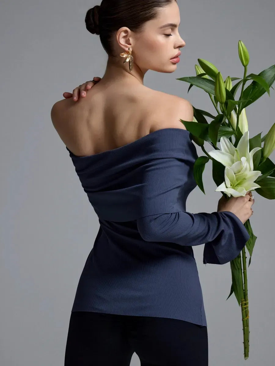 Elevate your wardrobe with this contemporary off-shoulder essential.
