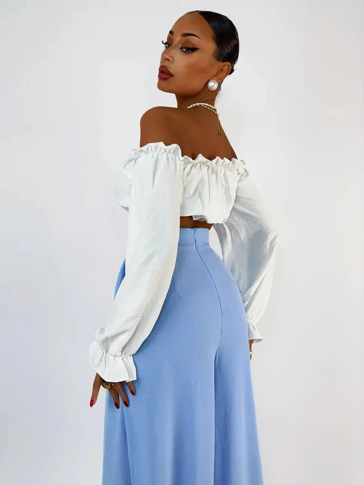 Crafted from a soft cotton-polyester blend, these light blue pants deliver breathable comfort and a subtle texture for refined appeal. Ideal for summer events, casual gatherings, or evening outings, the Maris Pants add a fresh and elegant statement to any occasion.