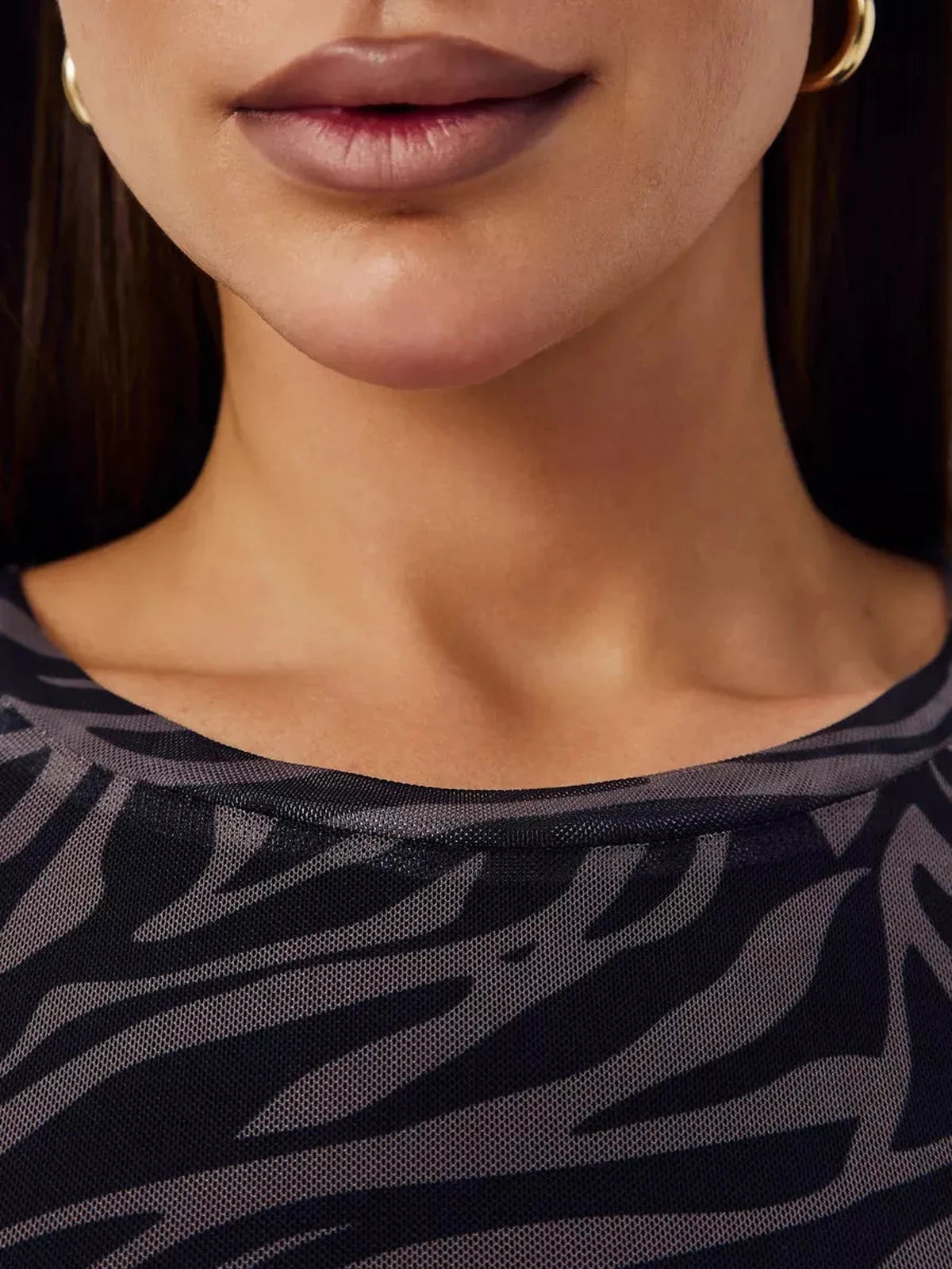 The Nocturne Midi Dress is a refined women’s midi dress designed for confident, modern styling across day-to-night occasions. Featuring a sophisticated black and beige zebra-inspired print, this midi dress delivers graphic impact while maintaining a sleek and elegant silhouette.