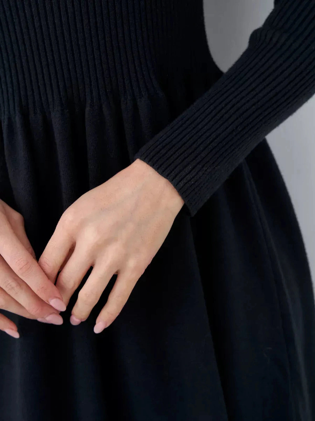 Introducing the Nora Midi Dress, a sophisticated winter essential crafted to bring warmth and style to your wardrobe. This elegant knit dress features a luxurious blend of viscose, polyester, nylon, and cashmere, creating a cozy yet refined feel. Its sleek black hue and ribbed texture exude classic charm perfect for versatile styling.