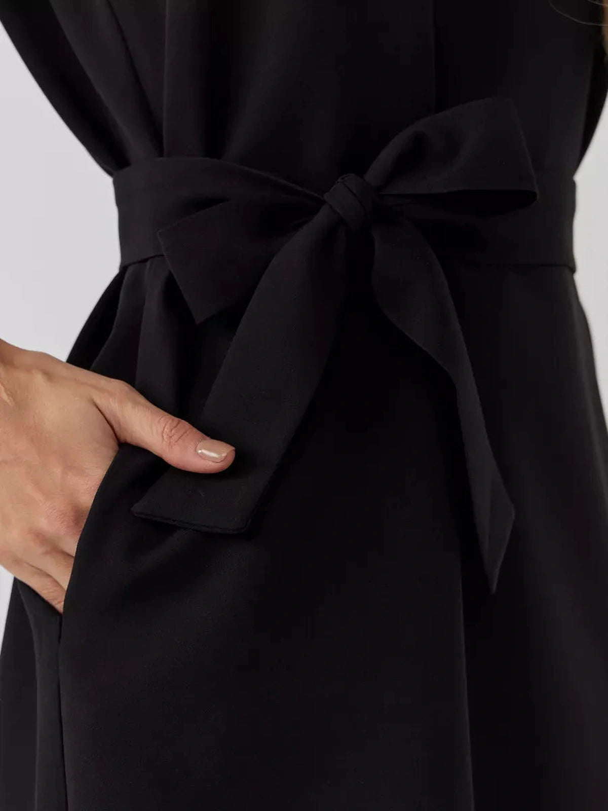 Designed with a loose semi-fitted cut, the Nova Mini Dress enhances your natural shape without compromising comfort. The detachable belt allows you to define your waist for a polished look or wear it loose for a more relaxed vibe. This classic black dress is easy to style and pairs beautifully with your favorite accessories for an elevated, chic appearance.