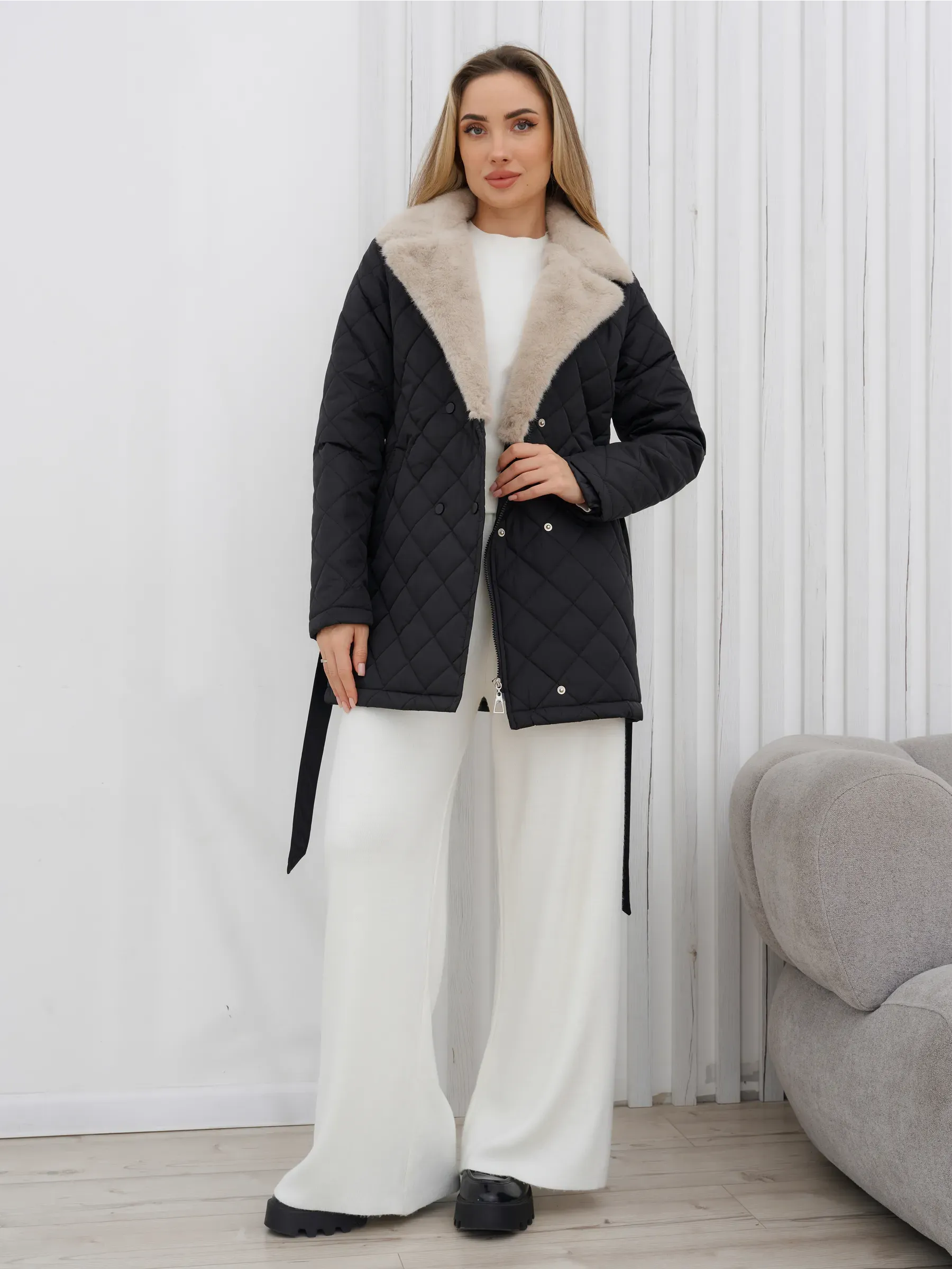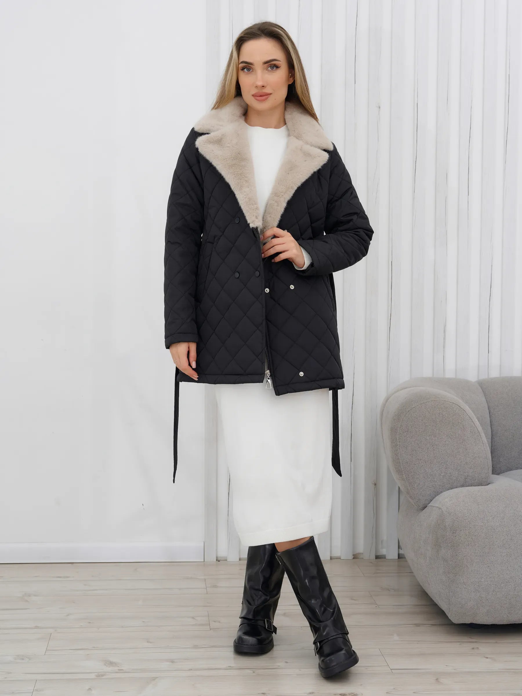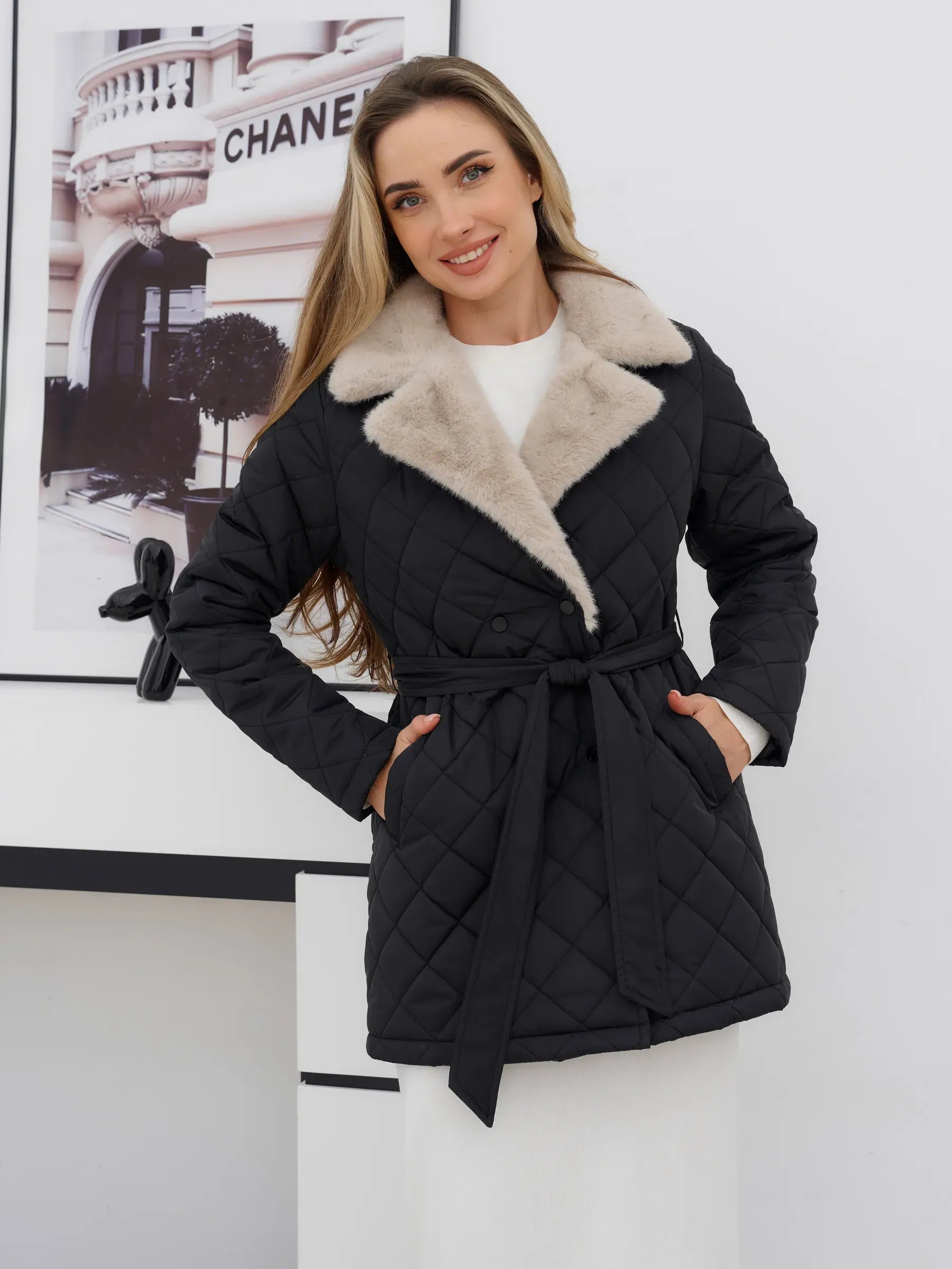 Designed to keep you warm in temperatures from -5°C to +10°C, the jacket features a water-repellent exterior that protects you from rain and snow. The quilted, glossy black finish gives it a sleek and modern look.