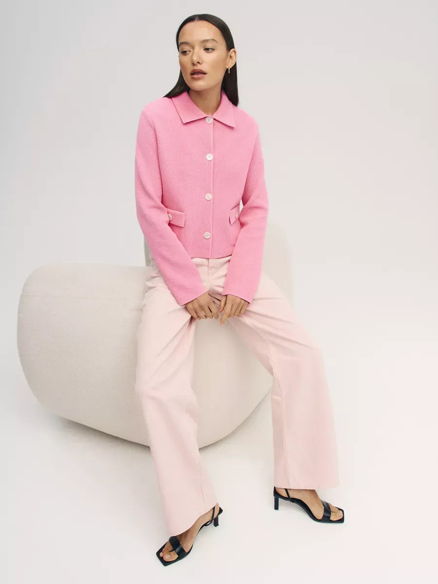 The Serena Jacket is a vibrant and stylish addition to any modern wardrobe. Crafted from a breathable cotton-viscose blend, this cropped women’s jacket in a bright pink shade offers both comfort and eye-catching appeal. Its lightweight fabric and tailored silhouette make it perfect for layering during transitional seasons or adding a pop of color to casual and formal outfits.