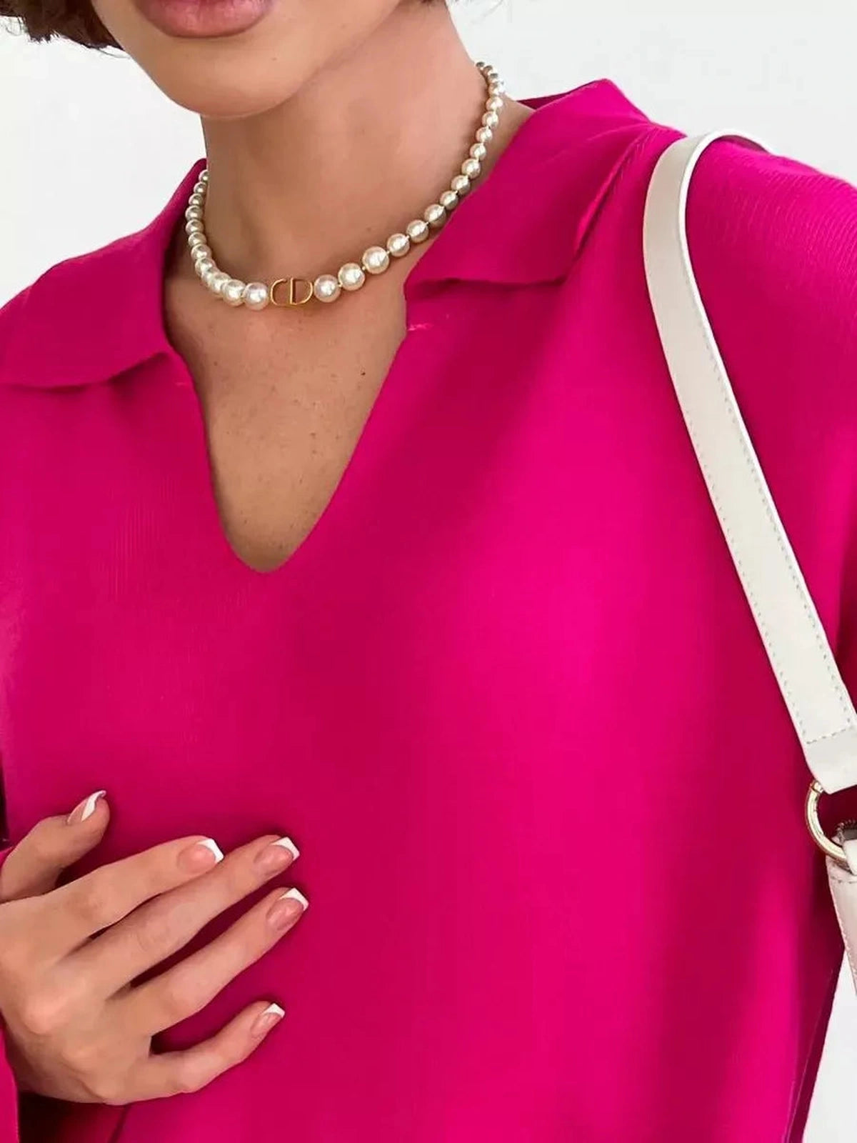 Step into bold elegance with the Vega Midi Dress, a luxurious oversized knit dress designed for women who value style and comfort. Featuring a rich fuchsia shade, this warm midi dress offers a flattering V-neck collar and a cozy, dense knit texture that makes it perfect for autumn and winter seasons. The acrylic and cotton blend fabric ensures softness and warmth, ideal for everyday wear and professional settings alike.